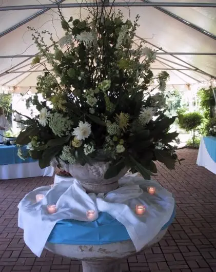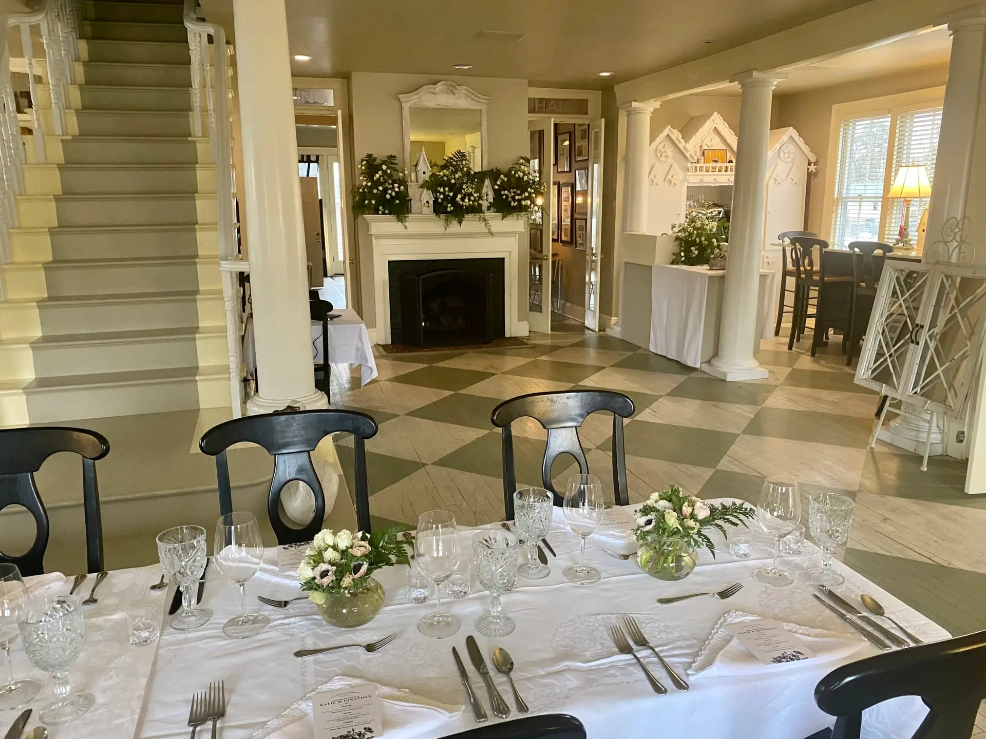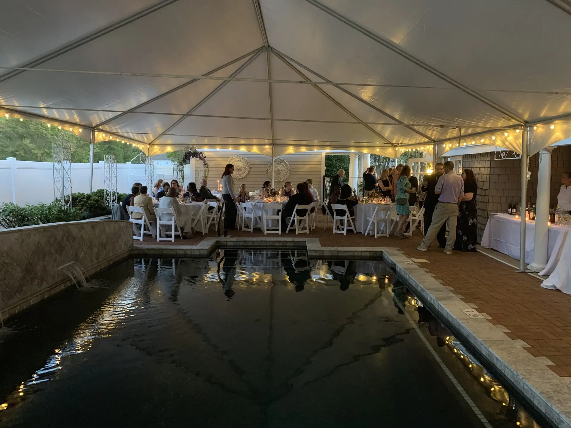 Get married on our front steps underneath the words “Hope and Glory,” host a whimsical garden ceremony under our cupola-capped gazebo, or say your vows on the grand staircase in our lobby. Forbes magazine said one “would expect to see Julia Roberts come down in a sun dress”. We can host rehearsal dinners and receptions for up to 75 guests under our tent, and for smaller weddings, we can offer The Colonnade, our micro-vineyard or our enchanting pool setting. One can also celebrate your love with a small elopement on our boat, True Love! There’s room for up to six people, making it ideal for intimate ceremonies and memorable moments. Not many people can say they’ve tied the knot on a Fortier 26 that was originally built for Sidney J. Weinberg who was a key member of the family dynasty that was central to Goldman Sach’s modern history as an investment bank.