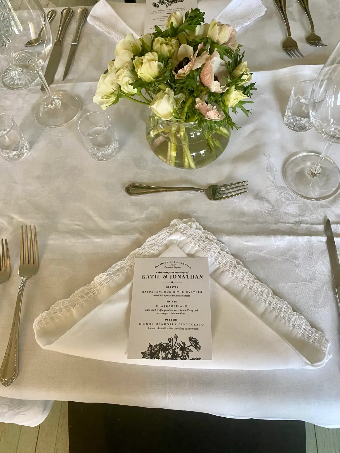 “Well, I have been on cloud nine since the wedding. Not only did I enjoy it immensely — everything was perfect — but everyone keeps telling me how fantastic it was (especially the food). They were honestly the best crabcakes I’ve ever eaten in my entire life. I know you have added to your already enormous fan club. I think everyone is planning a trip back to Irvington, including the groom’s mother. Thank you for everything.” Lee